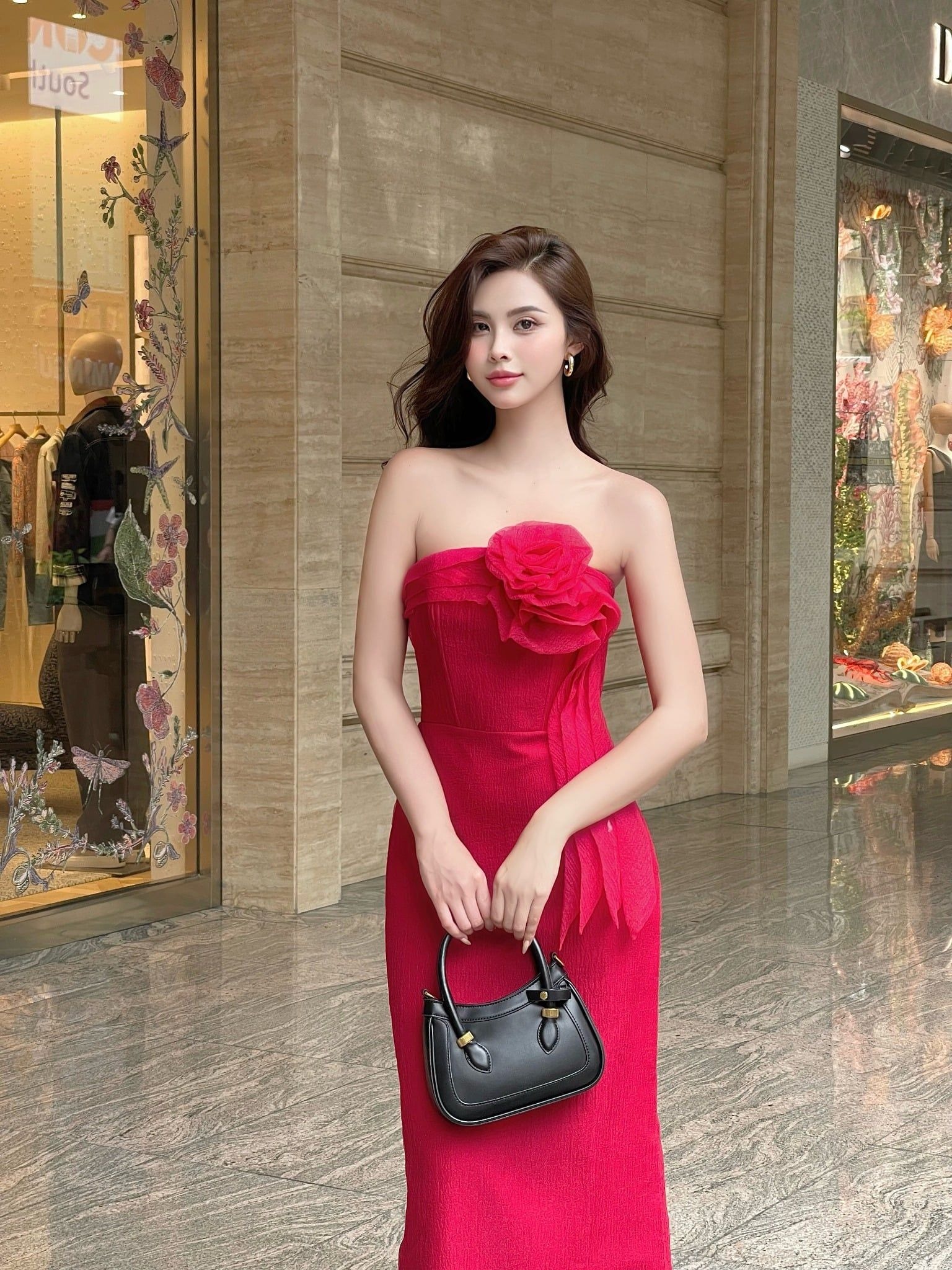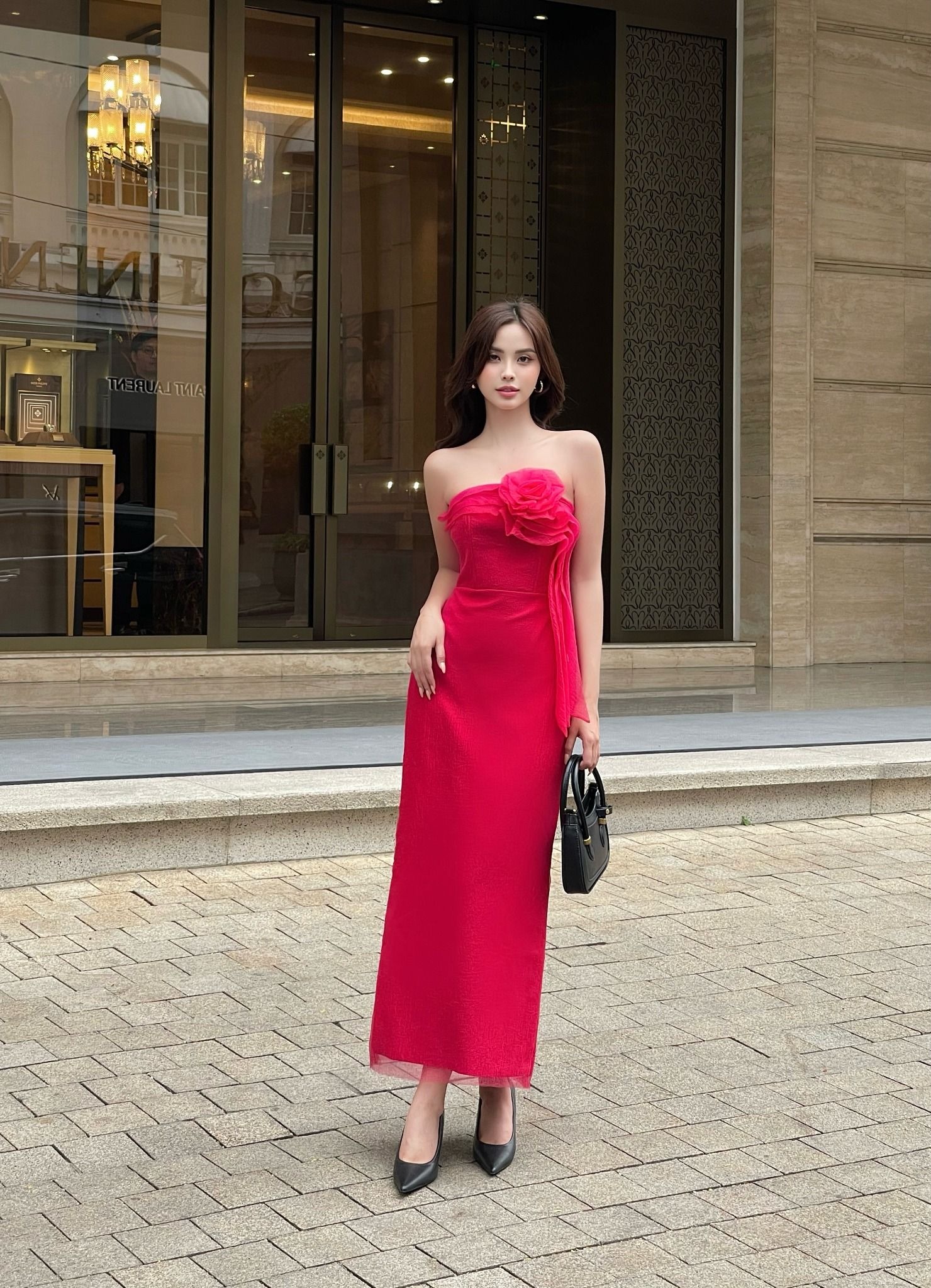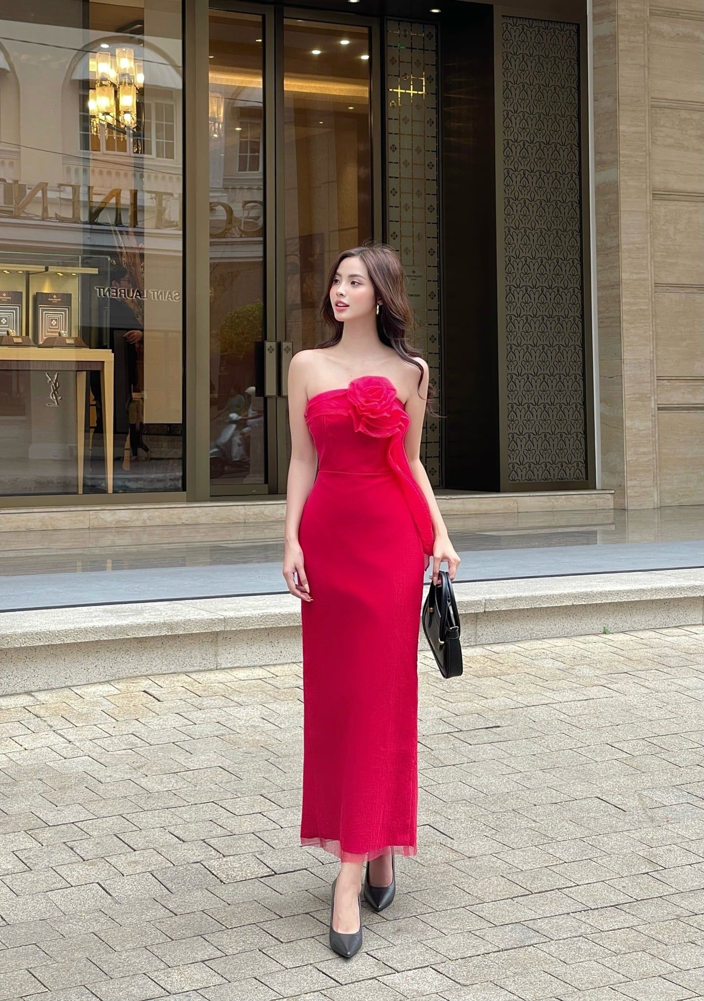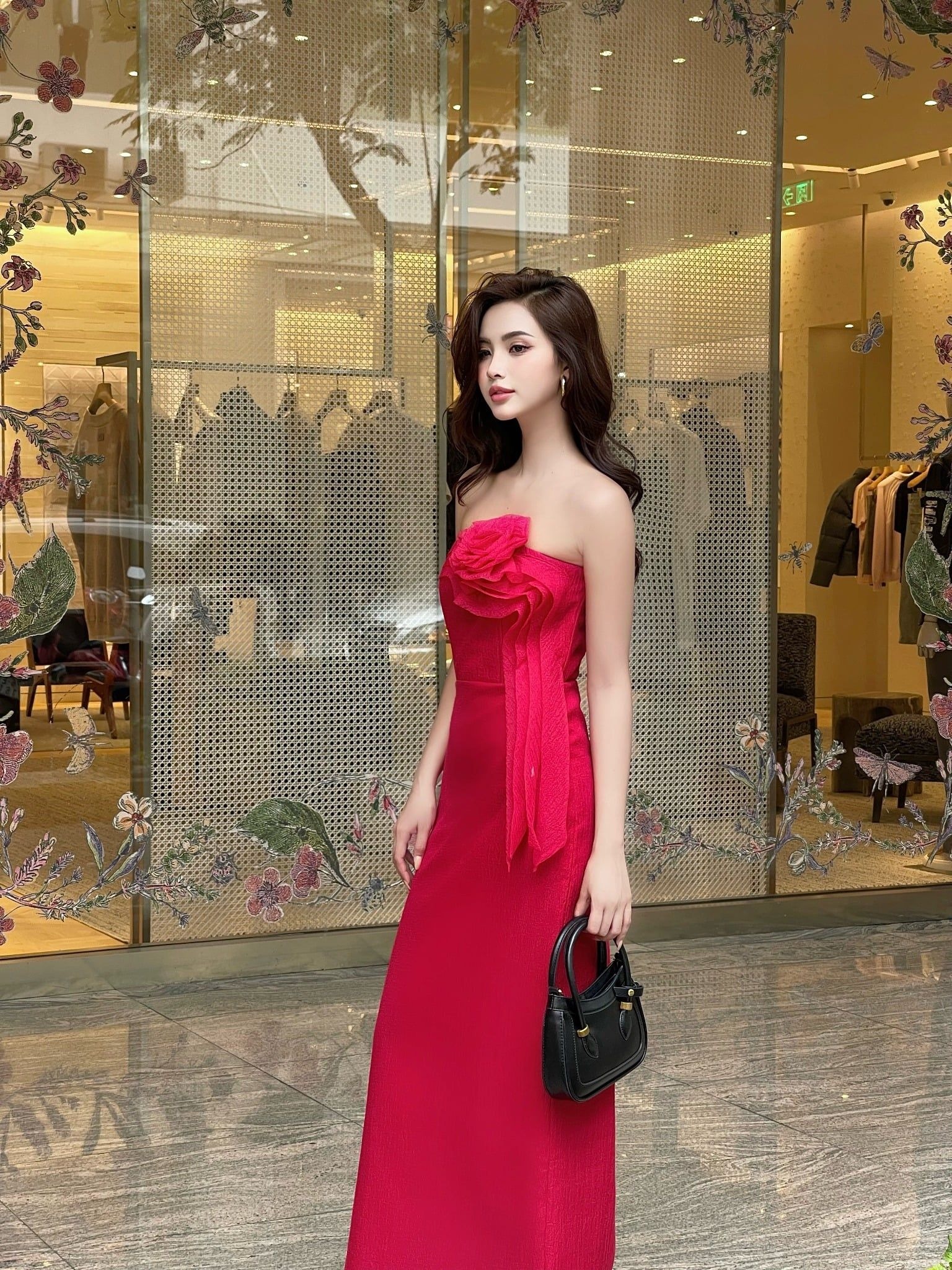 TÊN SẢN PHẨM: Đầm dài cúp ngực đính hoa 3D