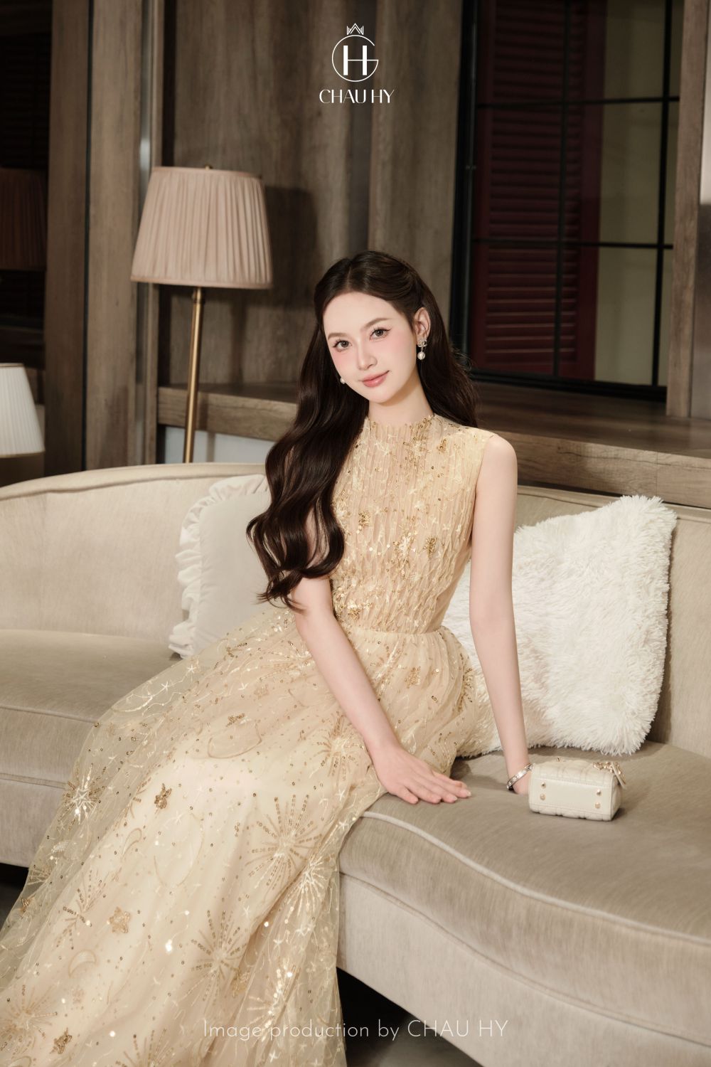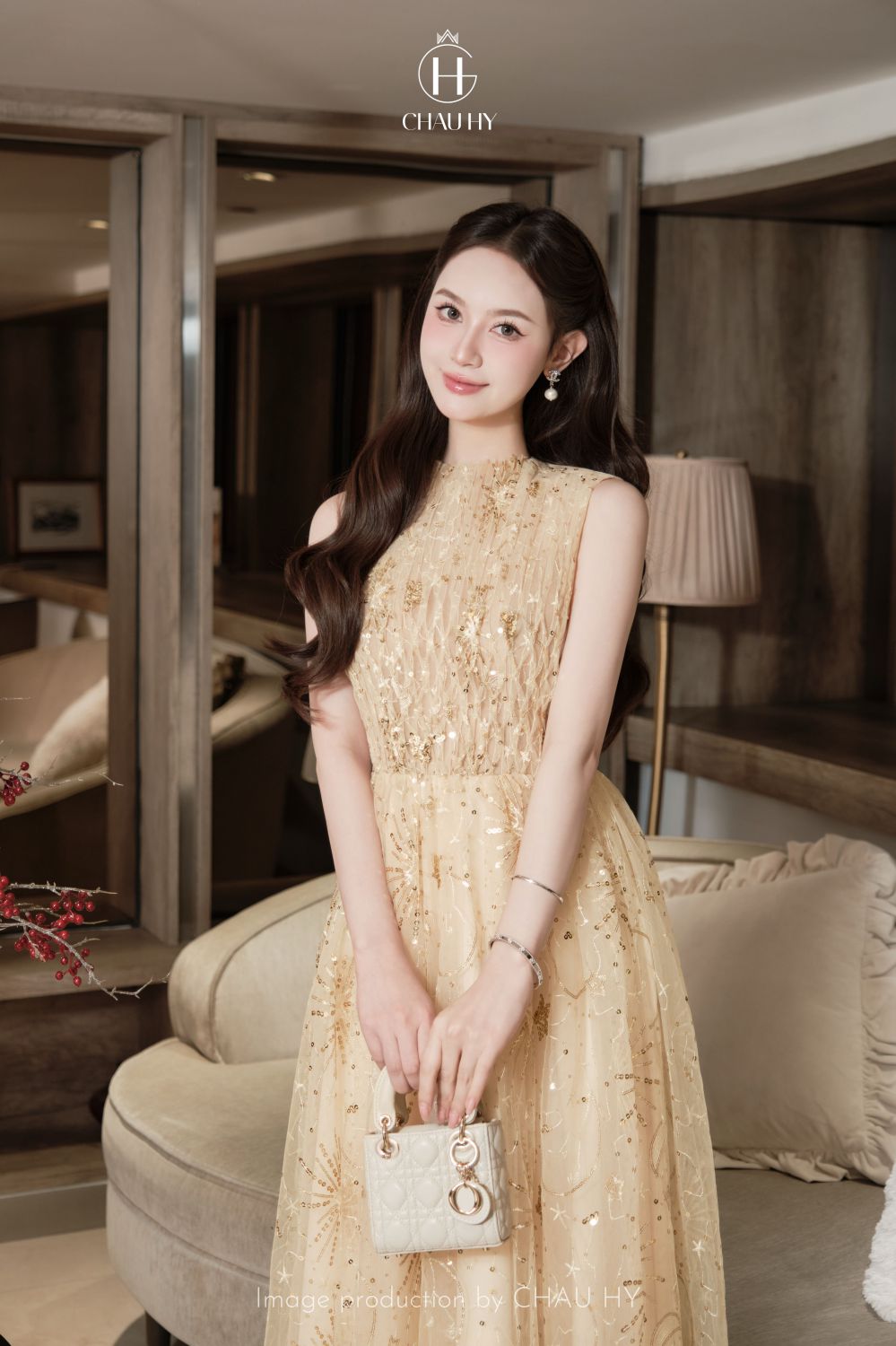 Sắc Màu Champagne Luxury: Tông màu vàng sâm panh kinh điển, không kén tông da, tôn vinh trọn vẹn vẻ đẹp quý phái và làn da rạng rỡ của phụ nữ Á Đông.