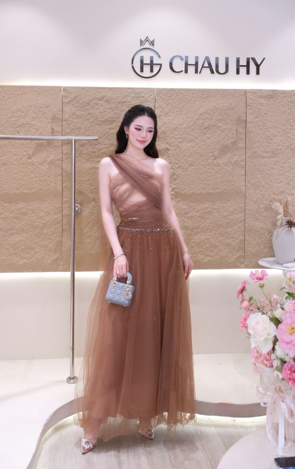 Chất Liệu Soft Tulle Đa Lớp: Chân váy xòe nhẹ được tạo nên từ nhiều lớp voan tơ cao cấp, mang lại độ bay bổng thướt tha và sự nhẹ nhàng thoát tục trong mỗi bước đi của quý cô.