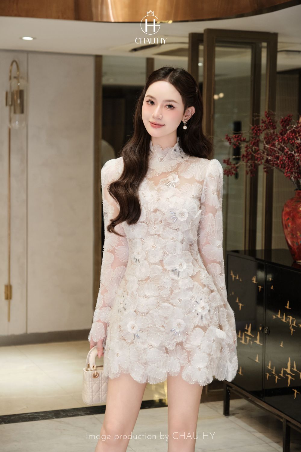 Đầm Ren Hoa Thêu Nổi Đính Pha Lê – “The Crystal Blossom” | CHAU HY Signature LV3206
