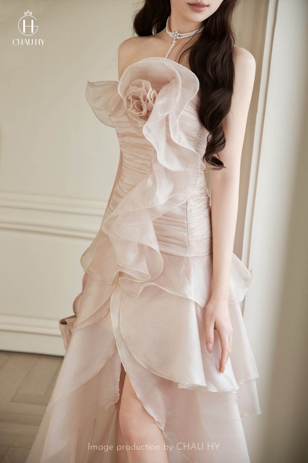 Đầm Satin Thiết Kế Hoa Hồng 3D – “The Rose Satin” | CHAU HY Signature LV3220